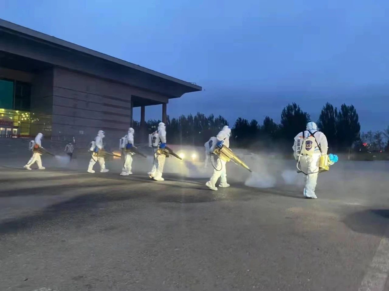 青年志愿者被分配到各个隔离点、核酸检测点、接种大厅,盖州市的幼儿园,中小学校做防疫消杀,他们穿着厚厚的防护装备,背着70多斤重的消毒装备,每天工作16个小时,脱下防护服的那一刻,他们的衣服全部湿透,背着药壶的肩膀上满是伤痕。