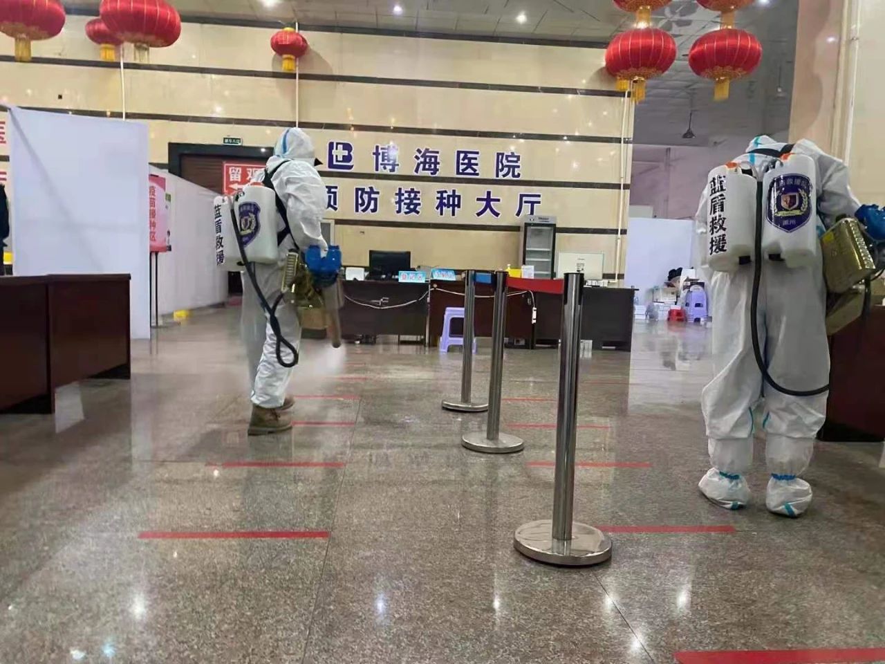 抗击疫情工作开始以来,蓝盾救援队队员及蓝盾的所有志愿者一直奋战在抗疫前线。烈日下,所有的志愿者穿着不透气的防护服和口罩面屏在各个核酸检测点和各个预防接种大厅为广大市民做安全保障服务,耐心的讲解政策,维持现场秩序,为老弱病残者申请快速通道,获得广大群众的一致认可。