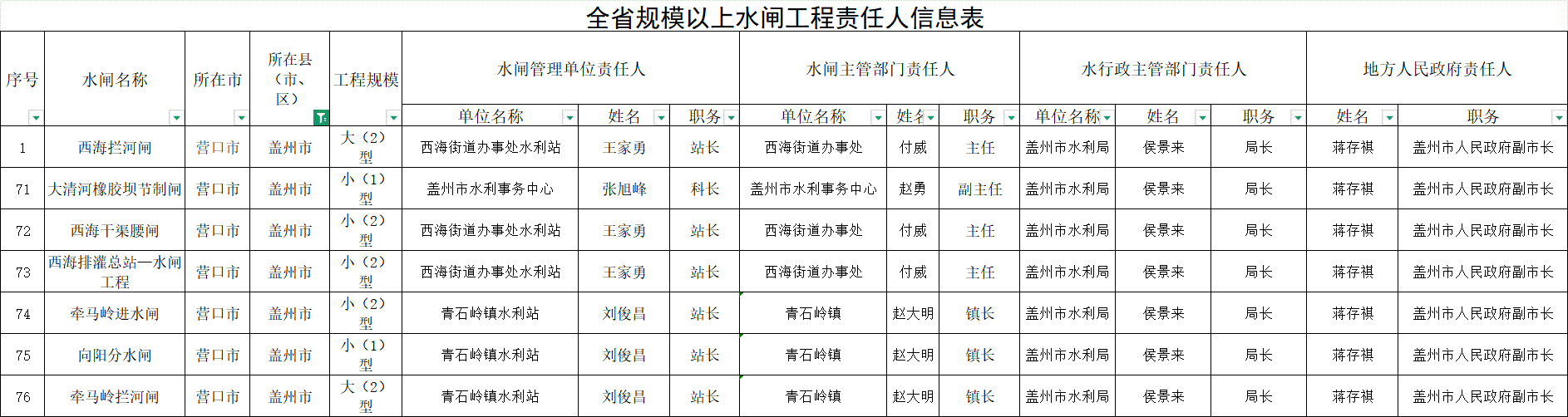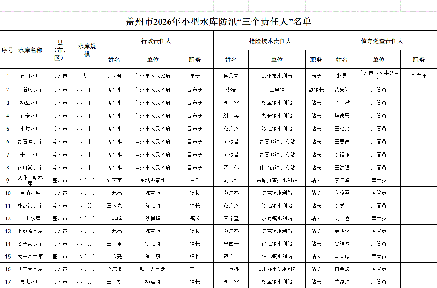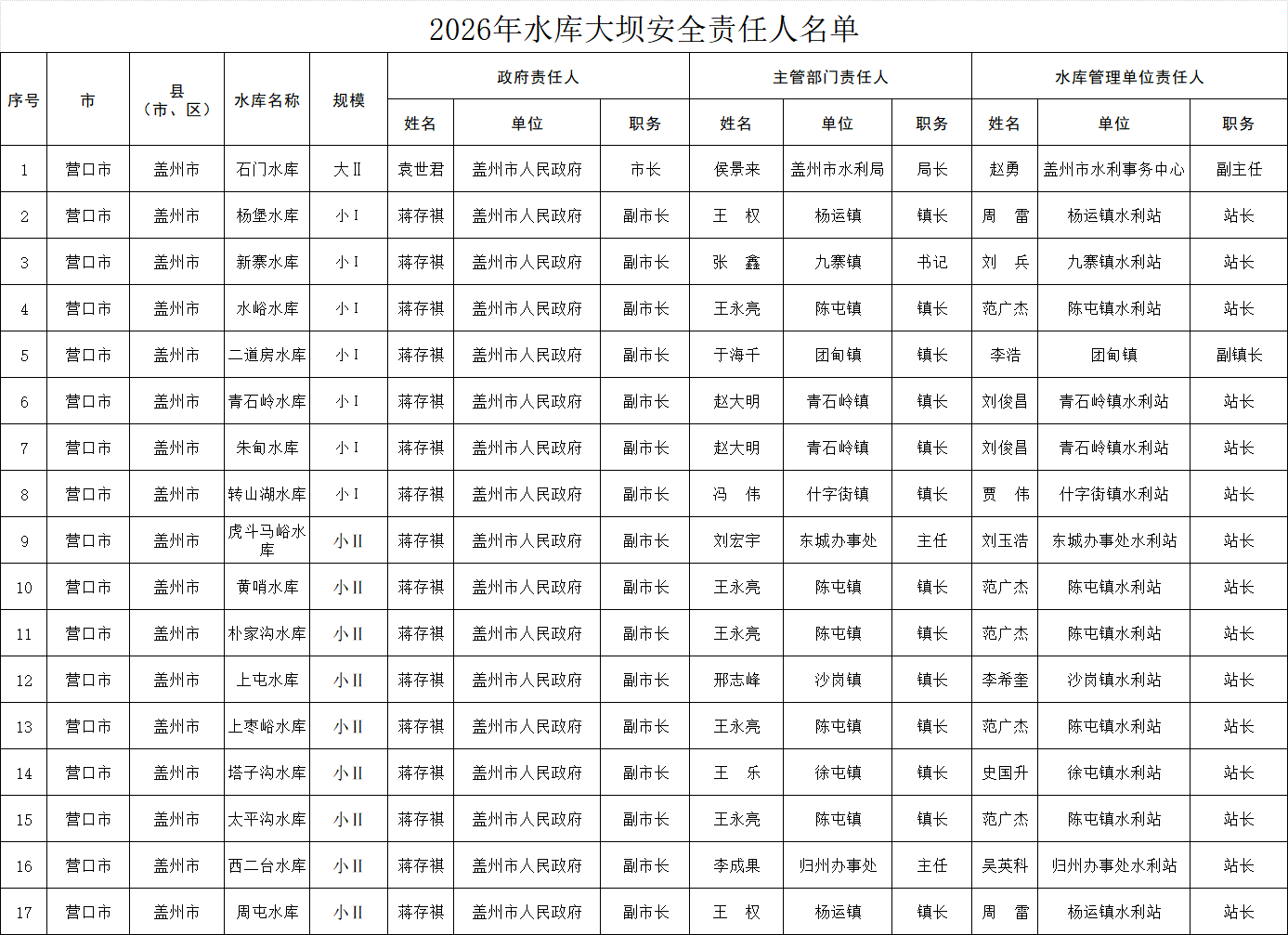 2026年水库大坝安全、防汛责任人及水闸工程责任人公示