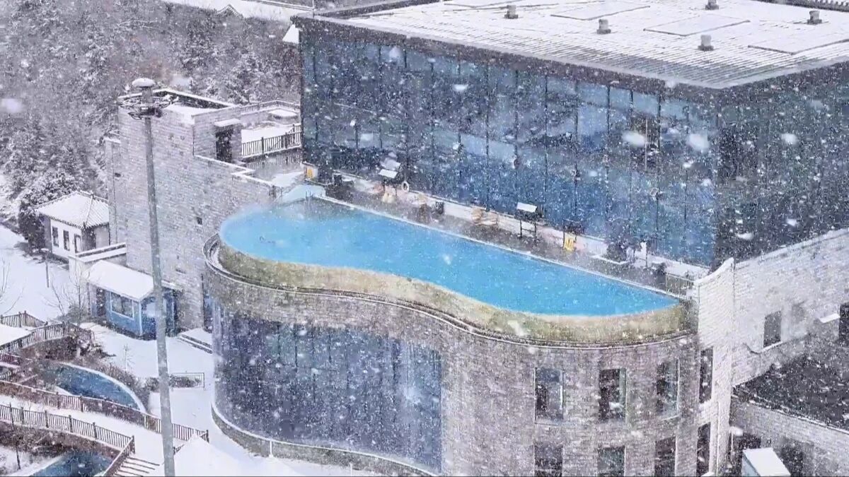 一天的游玩过后,来到双台镇悦珑庄温泉,在无边泳池中悠然自得地泡汤,四周是洁白的雪景,池中是温暖如春的泉水。这种冰火两重天的极致体验,让身心得到完全的放松,所有的疲惫都在这一刻烟消云散。