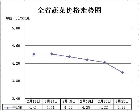 三、蔬菜价格有所下降。节日期间天气较往年相对温和晴好,有利于本地棚菜的生长和外地蔬菜的转运。商超和餐饮行业节前备货较为充足,能够充分满足居民日常需要,加上节日就餐时菜肴品质会有一定的提升,对普通蔬菜的需求量有所减少,推动蔬菜价格较节前有所下降。2月23日,重点监测的16种蔬菜平均价格为3.99元,周环比下降9.53%,同比上涨24.73%。