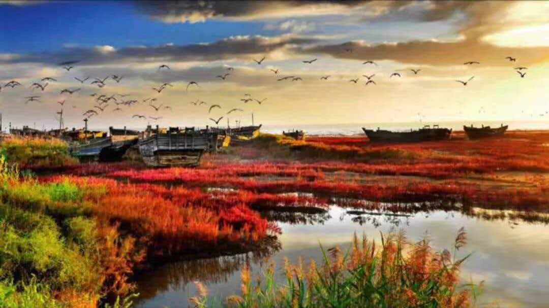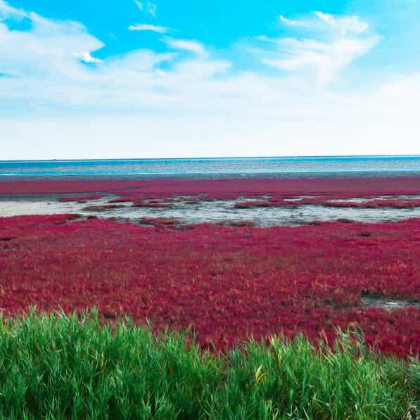 这里的红海滩是营口秋天的另一道绝美风景。漫步在木栈道上,你可以近距离地欣赏到红海滩的壮丽景色。海风轻拂,带来阵阵咸咸的海味,让人陶醉其中。在这里,你可以欣赏到海天一色的美景,也可以感受到大自然的神奇与伟大。