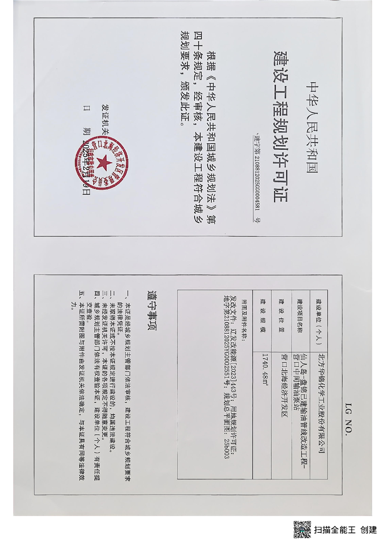 2025年营口北海经开区《建设工程规划许可》的工程设计方案的总平面图批后公布以及证书主动公开(华锦营口中间站)