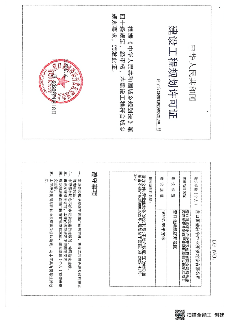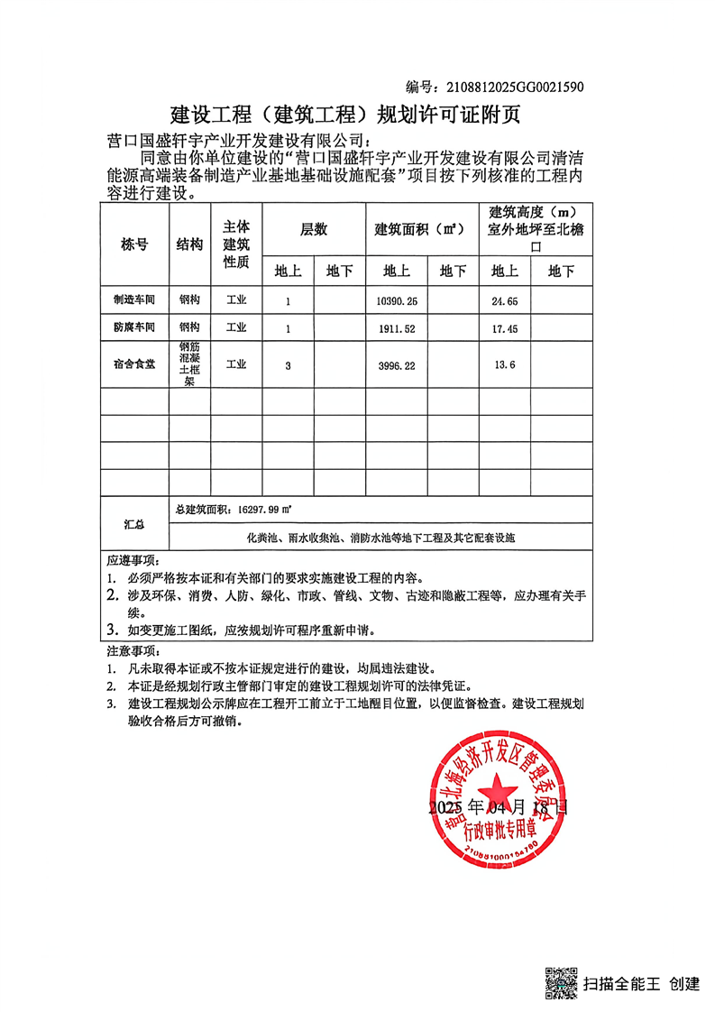 2025年营口北海经开区《建设工程规划许可》的工程设计方案的总平面图批后公布以及证书主动公开(营口国盛轩宇清洁能源高端装备制造基础设施项目)