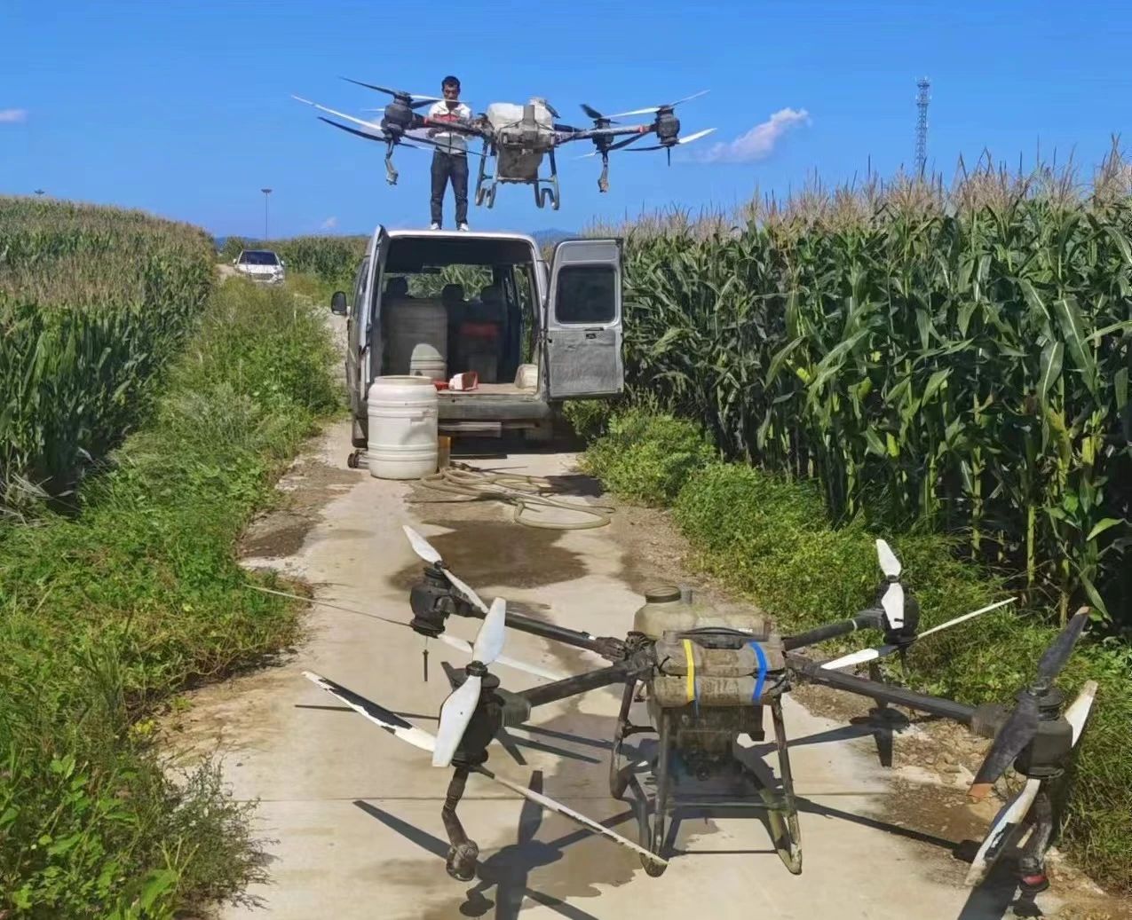 “一喷多促”是秋粮作物中后期田管关键技术,通过一次喷施磷酸二氢钾、杀虫杀菌剂、生长调节剂、抗旱保水剂等混合液,起到促壮苗稳长、促灌浆成熟、促单产提升等多重功效,达到减灾增产的目标。9月1日,市农业农村局组织民用植保无人机企业携专业防治人员在万福镇贵子沟村开展秋粮作物“一喷多促”统防统治示范“第一飞”,后增设二十余台植保无人机在什字街镇、梁屯镇、矿洞沟镇等乡镇十余个村整村推进,当天共计开展统防统治秋粮一万五千余亩,在实施过程中,对长势差地块、生育期延迟地块重点实施,采用边作业边验收的方式,把检查工作贯穿整个环节,对作业轨迹、喷施商品有效期、包装废弃物等进行重点检查。
