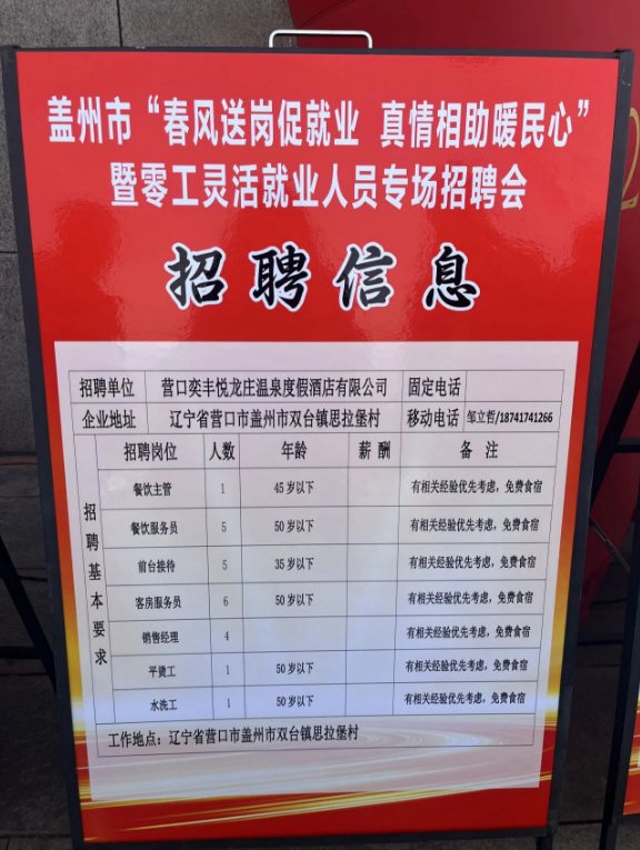 为拓宽盖州市广大妇女及家庭成员就业增收渠道,助力全市经济社会高质量发展,3月13日,市妇联积极参与由市委组织部、市总工会、市人力资源和社会保障局、市工商联联合主办,团市委、市妇联、市商务局、市工信局、市文旅局、市农业农村局、市退役军人事务局、市残联、市融媒体中心协办,市就业和社会保障事务中心承办“春风送岗促就业,精准服务暖人心”专场招聘活动。
