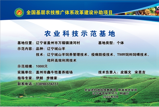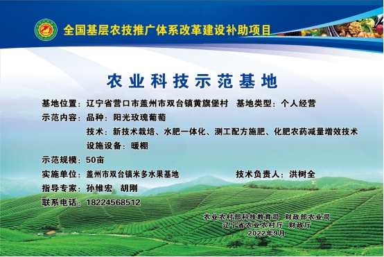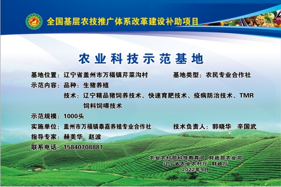 根据《盖州市2023年基层农技推广体系改革与建设项目方案》,结合历年基层农技推广体系改革与建设补助项目科技试验示范基地遴选标准的要求,按照公正公开、自愿申报、严格审核、择优的原则,结合本地区实际、拟选定座落盖州市青石岭镇蚂虹嘴村的金土地家庭农场、盖州市万福镇清河村的盖州市鑫牛牲畜养殖场、盖州市陈屯镇黄哨村的金泰园果蔬专业合作社、盖州市万福镇芹菜沟村的泰嘉养殖专业合作社、盖州市万福镇洪屯村富宝兴养殖专业合作社、盖州市双台镇黄旗堡村米多水果基地作为我市2023年科技试验示范基地。