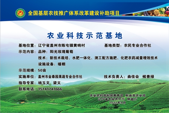 关于确定2023年盖州市基层农技推广体系改革与建设补助项目示范基地的公示
