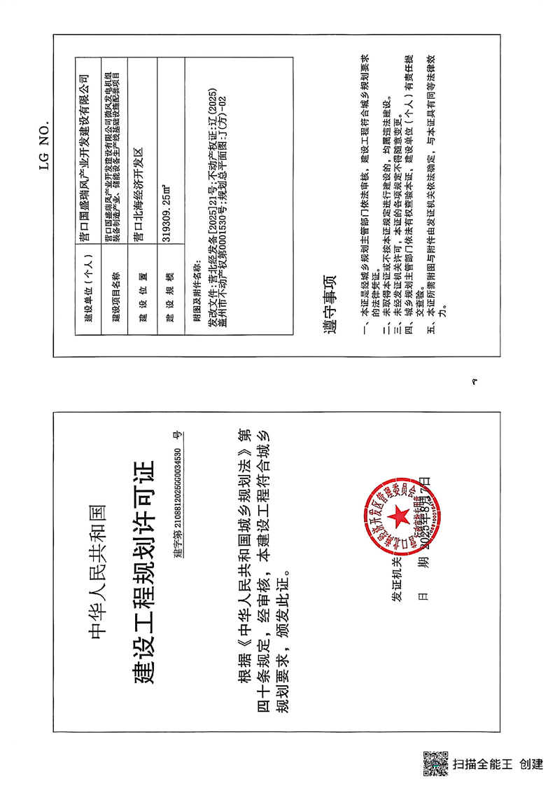 2025年营口北海经开区《建设工程规划许可》的工程设计方案的总平面图批后公布以及证书主动公开(营口国盛瑞风)