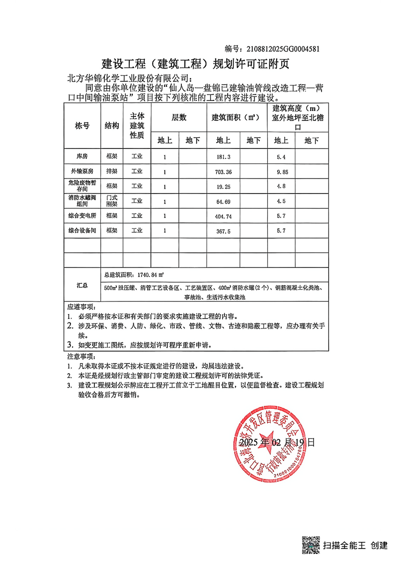2025年营口北海经开区《建设工程规划许可》的工程设计方案的总平面图批后公布以及证书主动公开(华锦营口中间站)