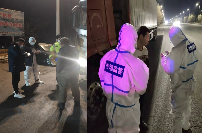 按照市委、市政府工作要求,市市场监督管理局执法大队成立两个专班,执行24小时全天候值班备勤制度,联合公安、交警等部门,依托营口南站、盖州站两个高速收费口设立检查点,守住关口严查进口冷链食品运输车辆,主要针对大型货车、冷链运输车等进行全面检查、逐一检查并登记在册,确保进口冷链食品入境货物检验检疫合格证明、核酸检测合格证明、消毒证明“三证”齐全。